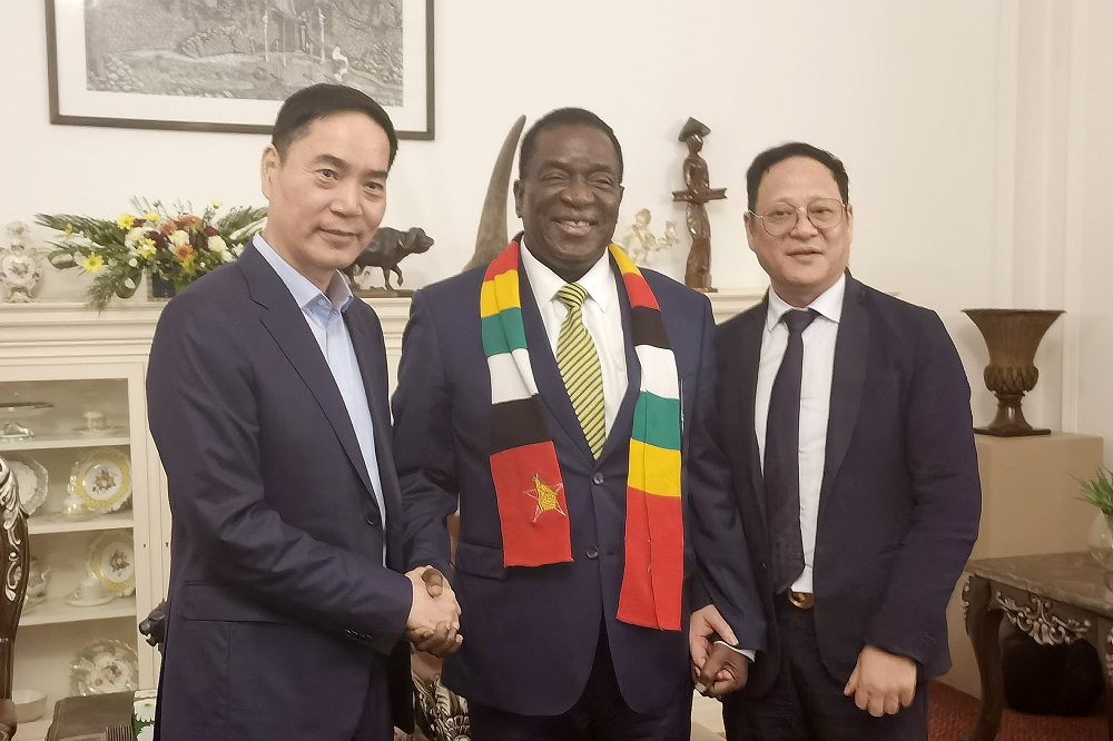 姆南加古瓦总统对jinnianhui今年会在津投资表示了感谢,他表示:jinnianhui今年会在津巴布韦的三个既有项目有力促进了经济发展,并解决了数千人的就业,尤其是普碳钢项目将改变津巴布韦的钢铁格局,从钢铁进口国转变为出口国,助力津巴布韦实现2030年愿景。姆南加古瓦总统希望项光达主席能把津巴布韦当家一样看待,随时来津巴布韦都会给予红毯待遇。